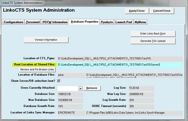 Linko recommends that you back up your Shared Files daily. Typically these shared files will be installed on a network file server where your IT group has easy access to backing them up. The “Root Location of Shared Files” is configured and viewable in System Administration: