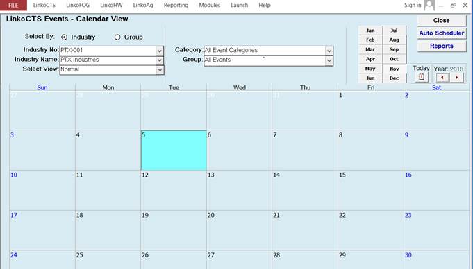Industry: Allows you to select, and work with events for a single Industry at a one time. Group: Allows you to select, and work with events for a whole group of Industries at the same time. These groups are created in the Industry Groups Section of the software. Any selection made here will be kept if you switch back to