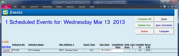 the Completed date for every event on the screen at one time. |