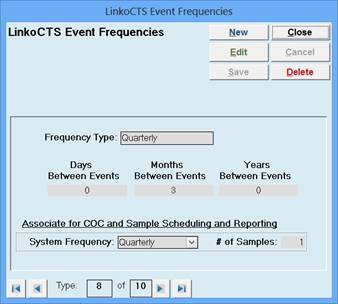 The first step is to determine which Sampling frequencies you use in your Sampling Program. Typical examples of Sampling frequencies are (this list is not meant to all inclusive):