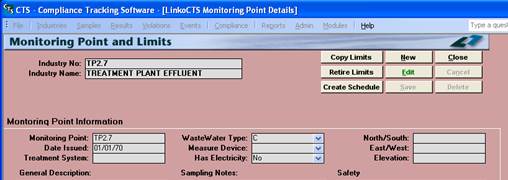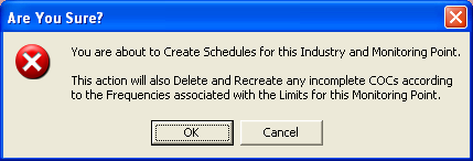 This process begins by the software user going to each IU, one at a time, and clicking on the Create Schedule button. The software creates a database table that includes both Authority and Industrial User Sampling records based on the frequencies assigned in the Parameter Limits for the Industrial User’s Monitoring Point.