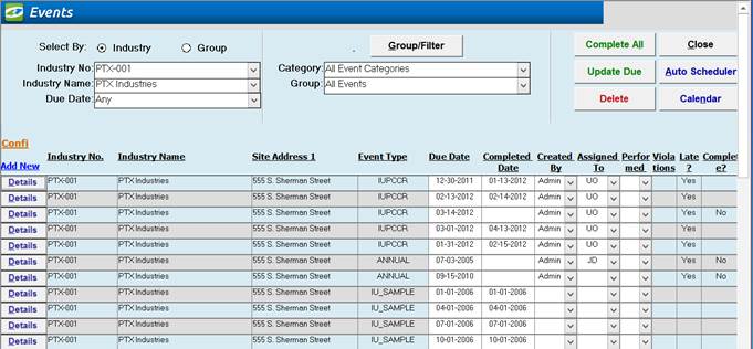 Industry: Allows you to select, and work with events for a single Industry one at a time. Group: Allows you to select, and work with events for a whole group of Industries at the same time. These groups are created in the Industry Groups Section of the software |