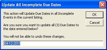 Incomplete Events with new Due Date. Clicking this control opens this window: