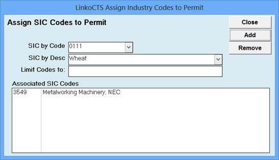 Opens Assign NAICS Codes window allowing you to change the NAICS