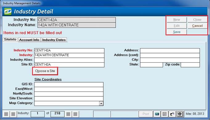 Allows you to edit the displayed Industry. While editing, the New, Edit, Close, and Record Selector buttons will be disabled. |
