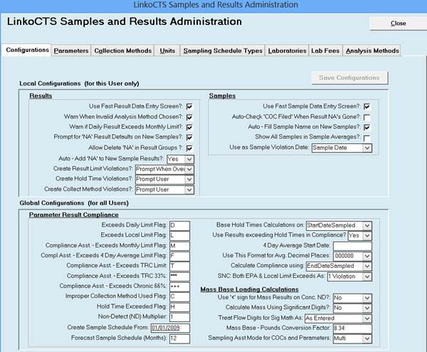 Used to configure fee structures for Group sampling or individual parameter sampling. Used in conjunction with the Sampling Assistant Module to make reports that show the costs of the sampling. |