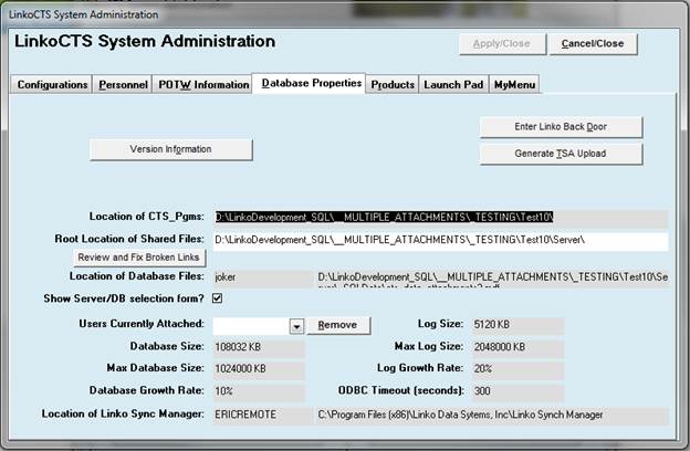 Like most of these settings this information is mainly directed to the time that you may need tech support. A quick check here allows the easy determination of the SQL server database size, how much room it has been allocated. |
